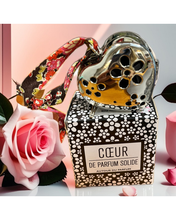Un petit coeur en métal argenté orné d'un ruban liberty (la couleur du ruban peut varier) dans lequel se love un parfum solide le tout...
