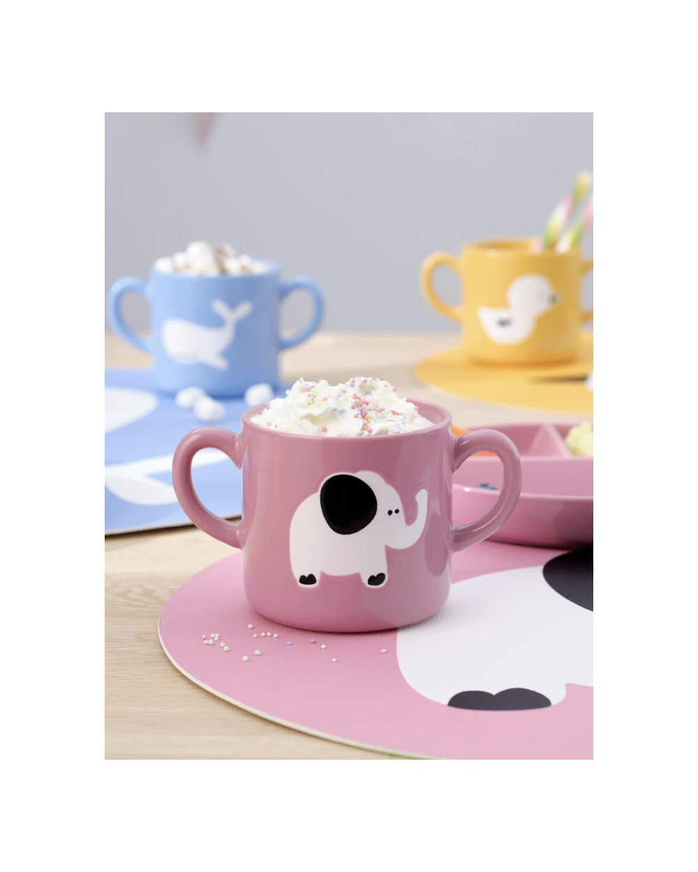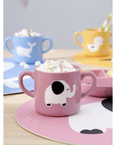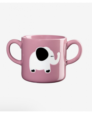 MUG PORCELAINE AVEC POIGNETS ELEPHANT ROSE