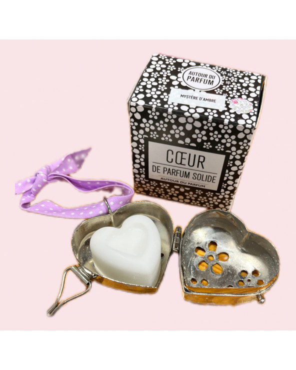 Un petit coeur en métal argenté orné d'un ruban liberty (la couleur du ruban peut varier) dans lequel se love un parfum solide le tout...