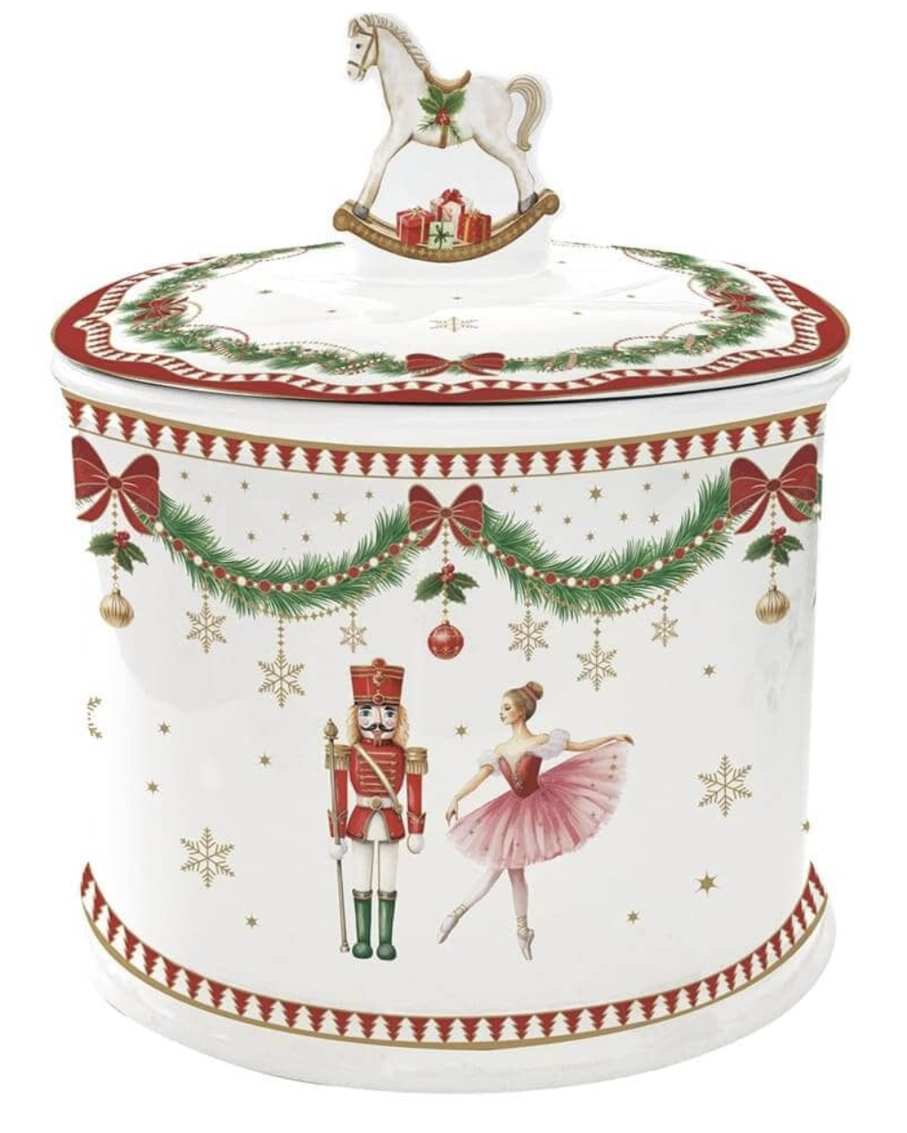 Apportez la magie de Noël à votre table avec cette boîte à biscuits en porcelaine. Un design élégant qui allie la tradition italienne de Noël avec des détails de haute qualité.