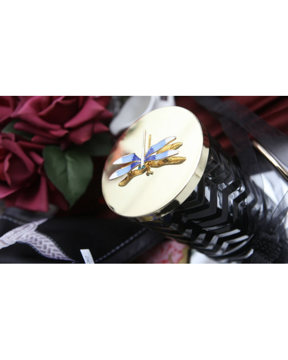La bougie en édition limitée avec verre à chevrons est livrée dans une boîte cadeau avec un foulard en soie.