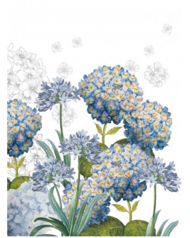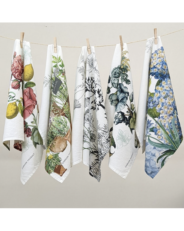 TORCHON JARDIN D'HORTENSIAS 50% LIN 50% COTON